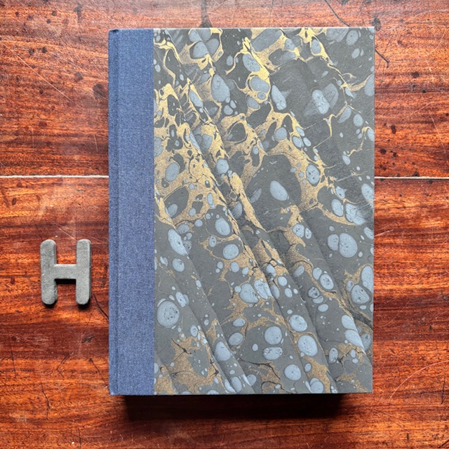 A5 5 year diaries, covered in our hand marbled paper and bound with coordinating cloth. The diaries have been printed in England and have a beautiful gold edge to the pages.