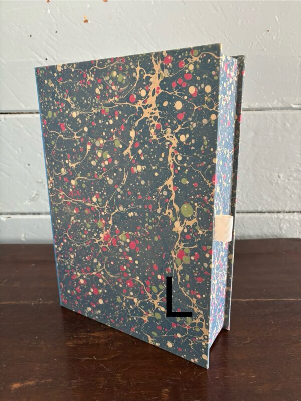Our Box files are the largest and deepest boxes we make (32cm x 22cm and 5cm deep) and comfortably fit A4 paper. They have a tab opener with a magnetic closure and an internal metal clip to keep papers in place. Every box is a one-off, and the range of prints available is constantly changing.