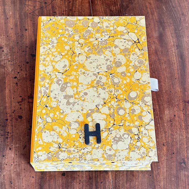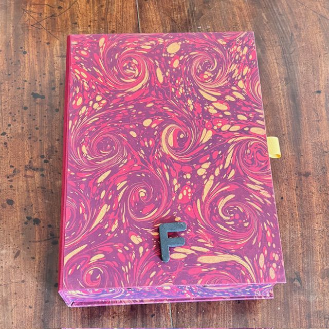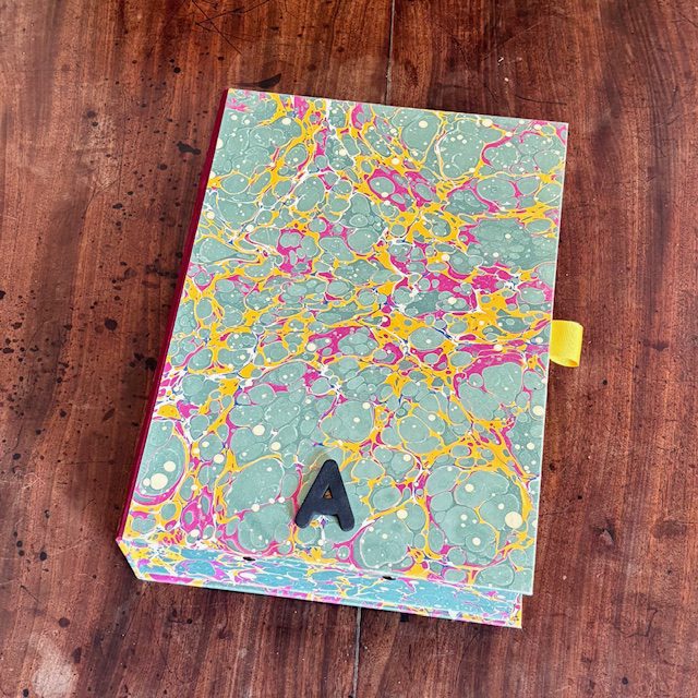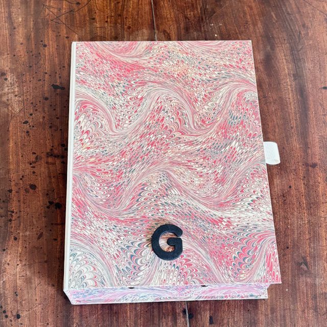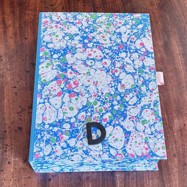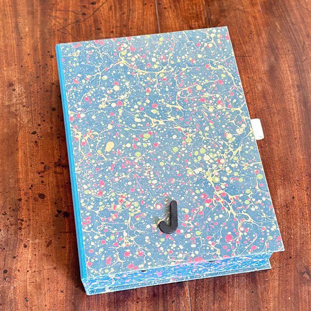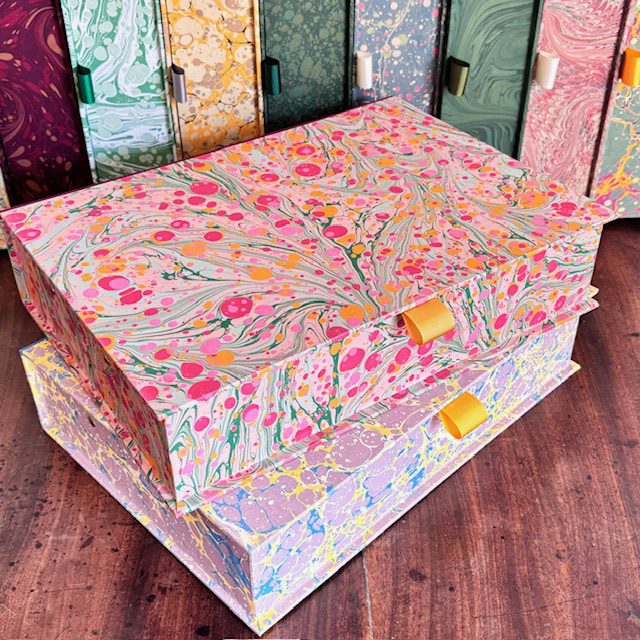 Our Box files are the largest and deepest boxes we make (32cm x 22cm and 5cm deep) and comfortably fit A4 paper. They have a tab opener with a magnetic closure and an internal metal clip to keep papers in place. Every box is a one-off, and the range of prints available is constantly changing.