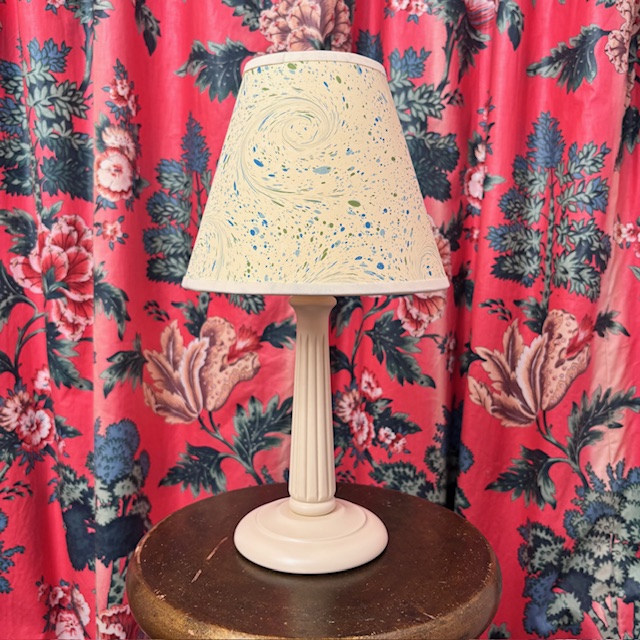 We have paired our Avon lampbase in cream with a Yarn pattern shade.
