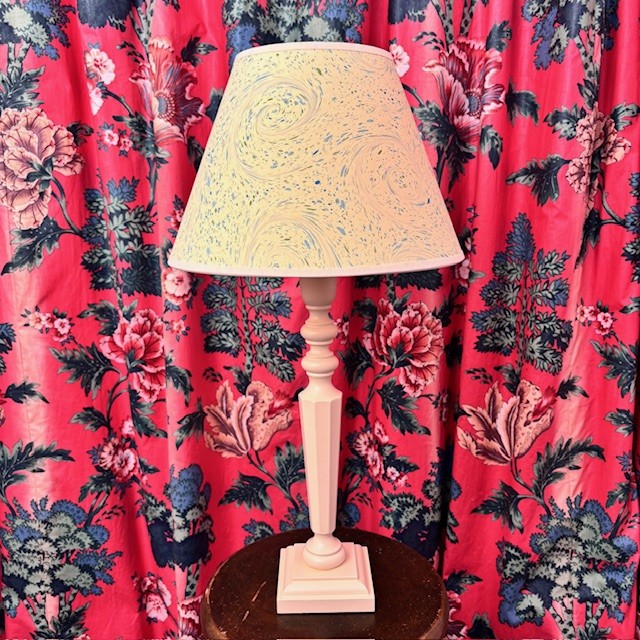 We have paired our Wylye lampbase in cream with a Yarn pattern empire shade.