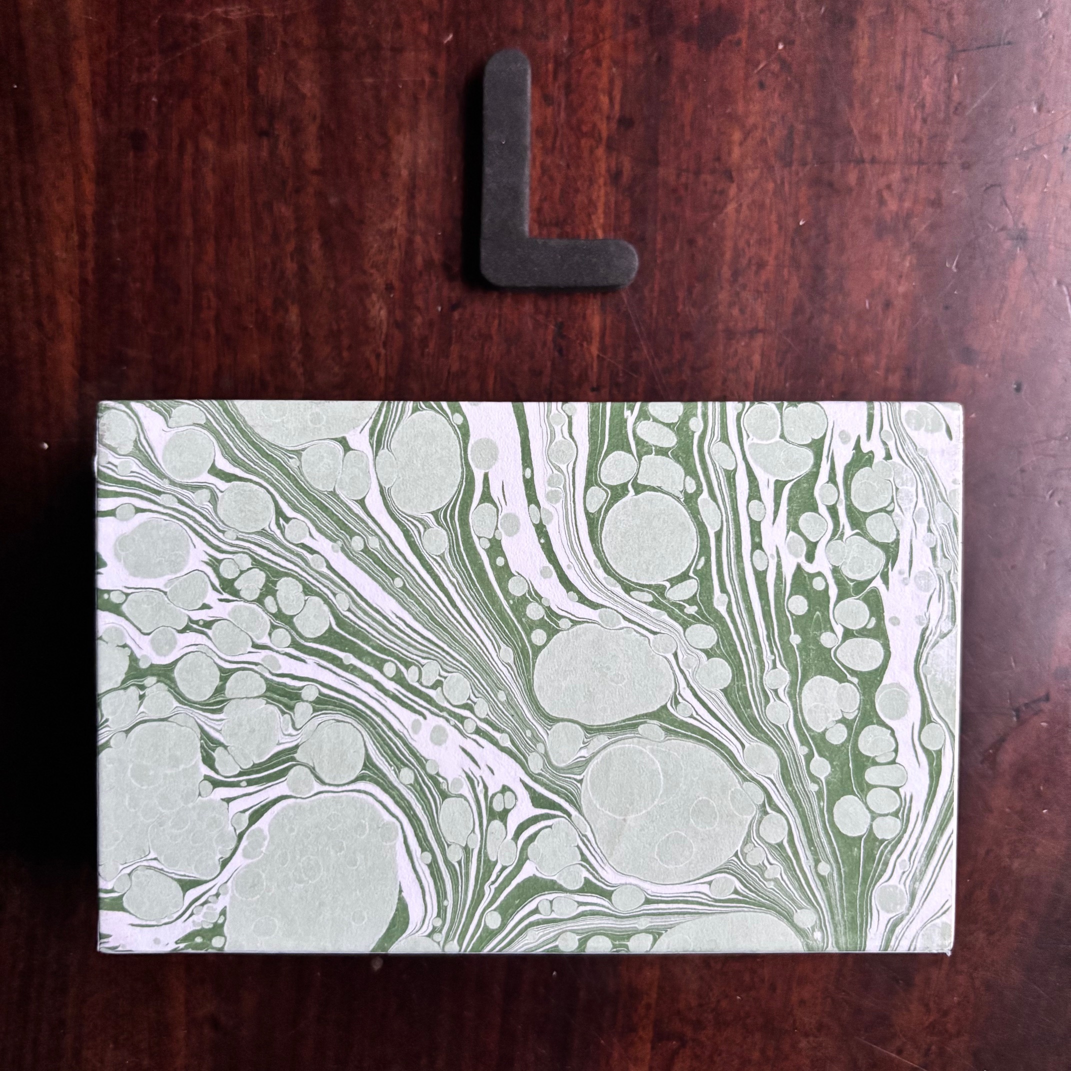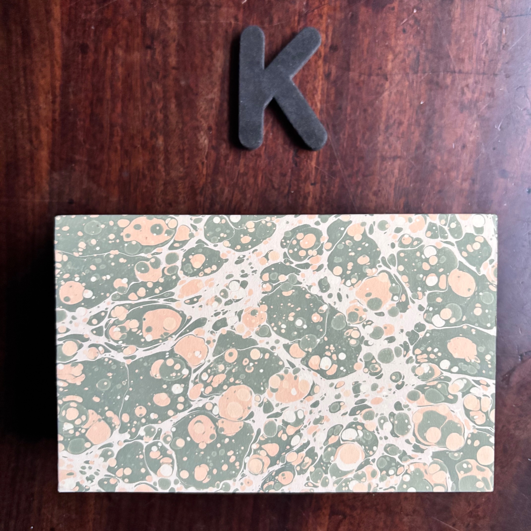 Our wooden matchbox covers fit a standard large box of cooks matches (provided), and are bound in our hand-marbled papers. They look perfect by the fireside. Every box is a one-off, and the range of prints available is constantly changing. Contact us to discuss your preferences.