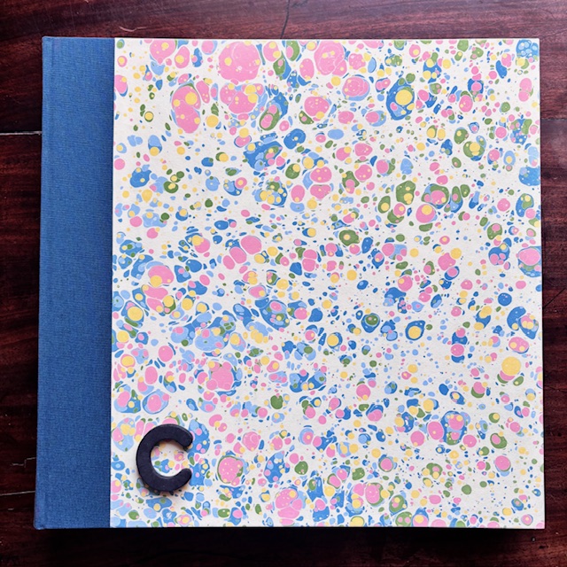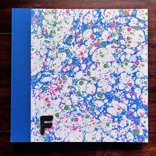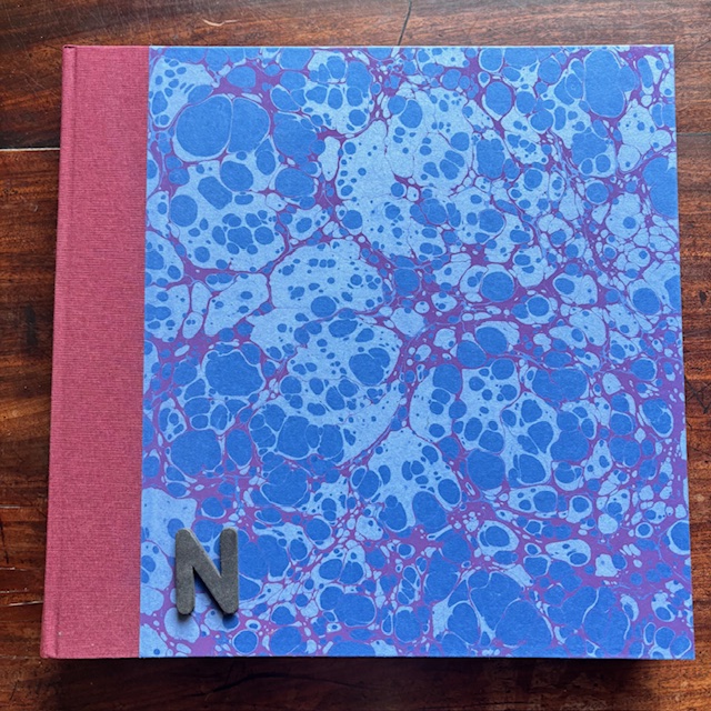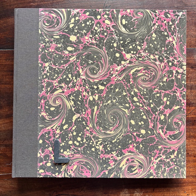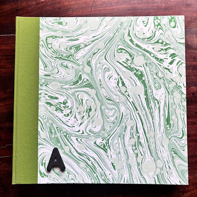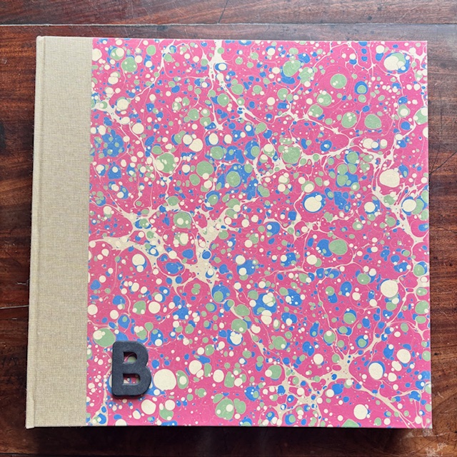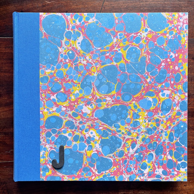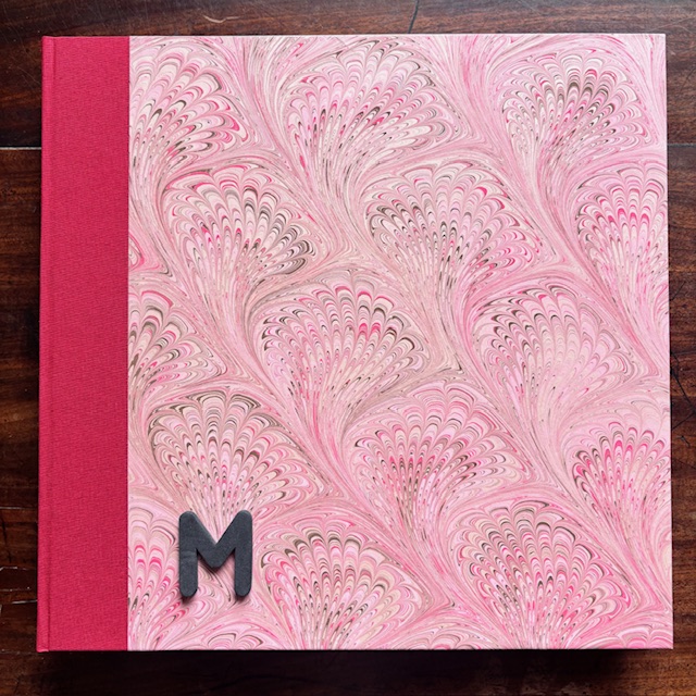 Our Tisbury albums have cream card pages and tissue between each page, and are available in extra-small (21cm x 16cm) 60 pages, small (23.5cm x 23.5cm) 80 pages, medium (33cm x 32cm) 80 pages, large (36cm x 36cm) 100 pages and extra-large (43cm x 36cm) 100 pages, in all our marbled papers. Every album is a one-off, and the range of prints available is constantly changing. Please see the image to see what patterns we currently have available.