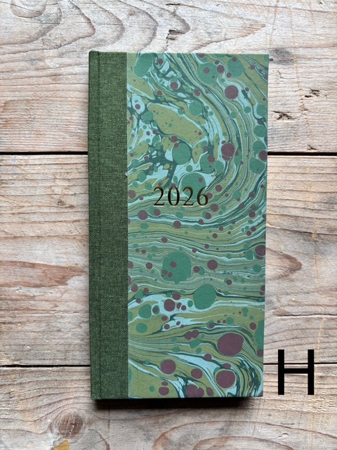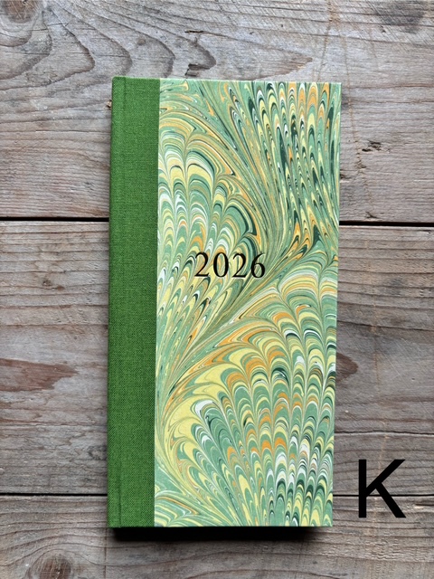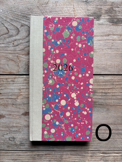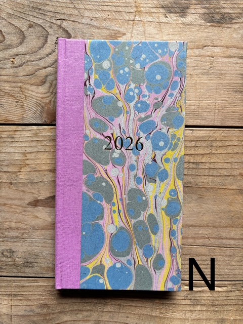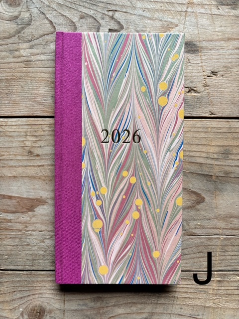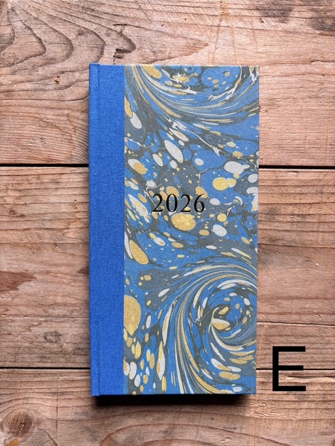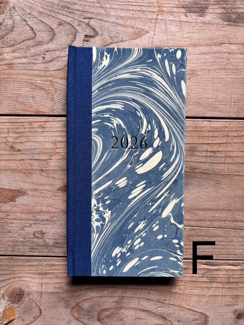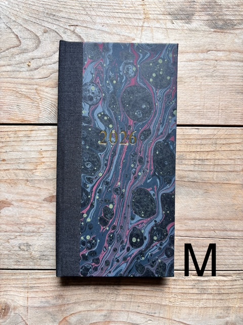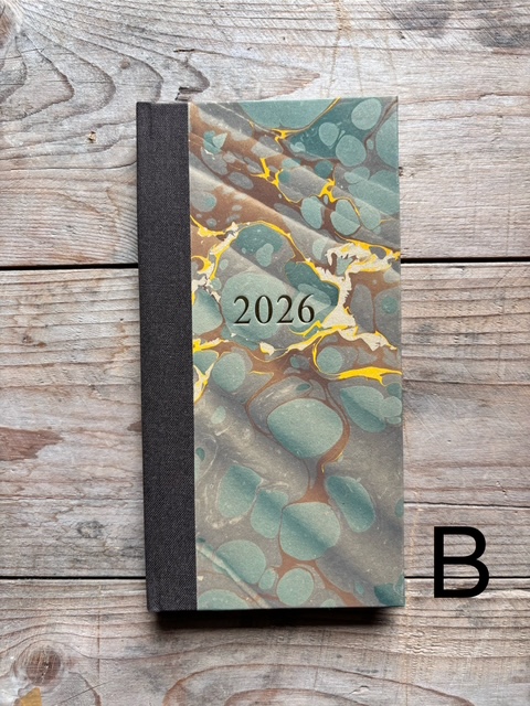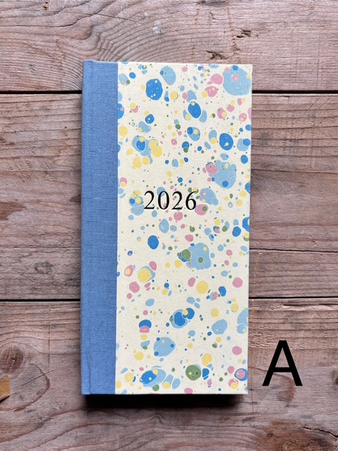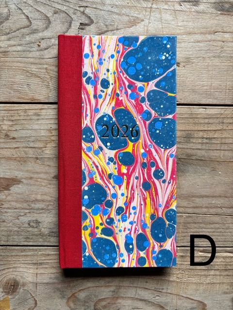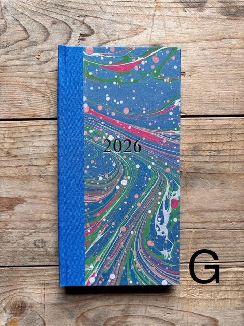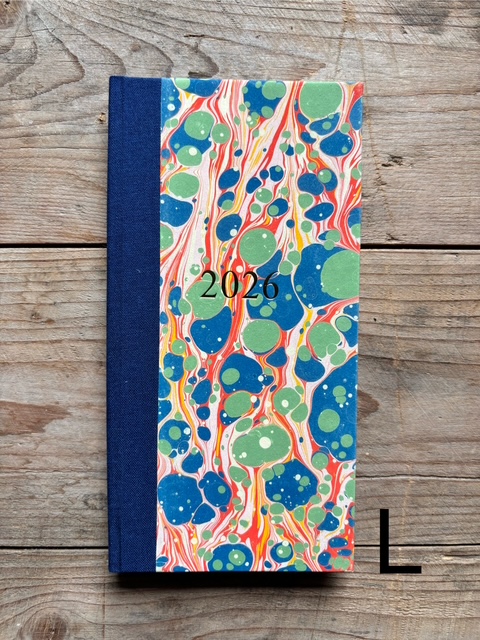 These pocket size diaries are A6 size, covered with our hand marbled paper.