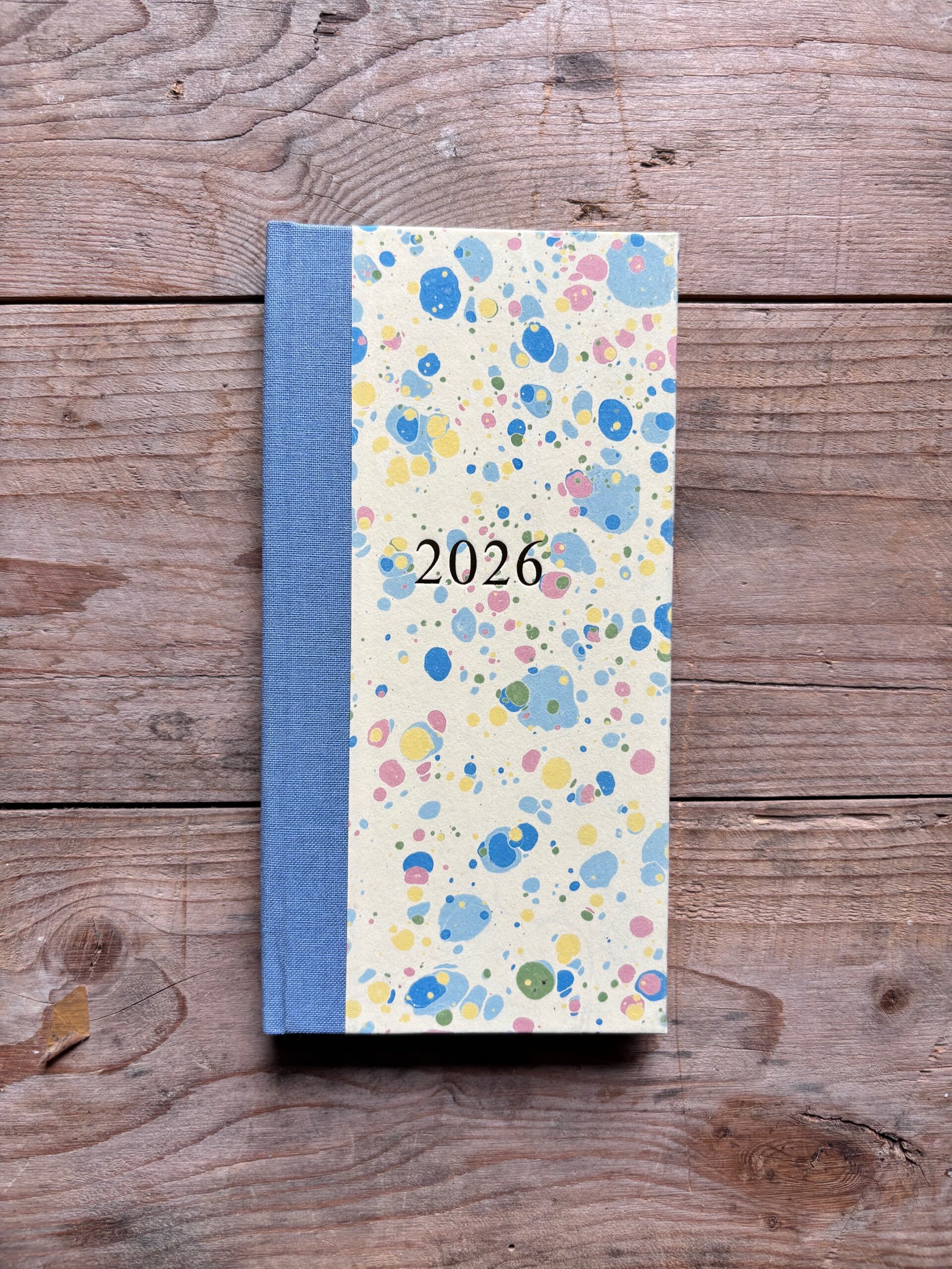 They have a cloth spine and gold blocking 2026 on the front.