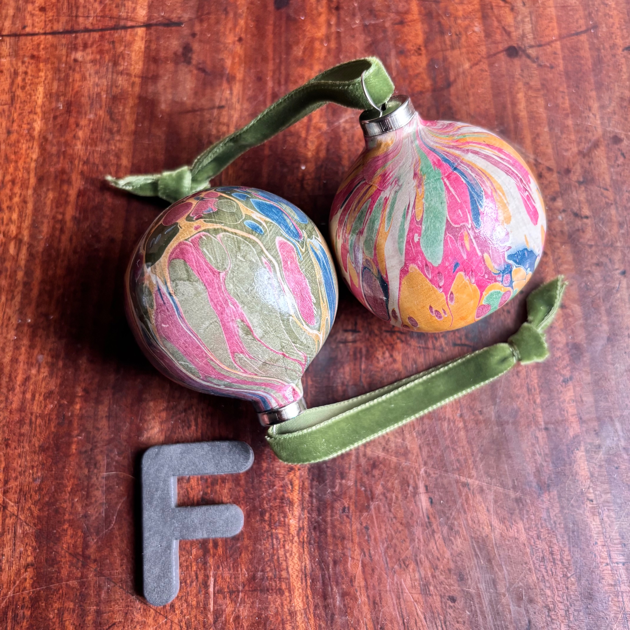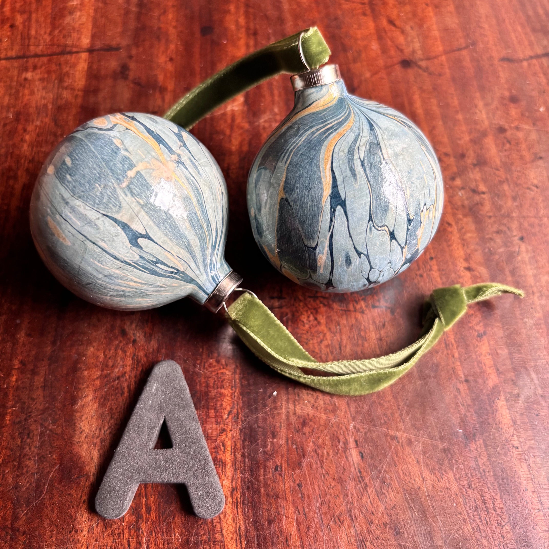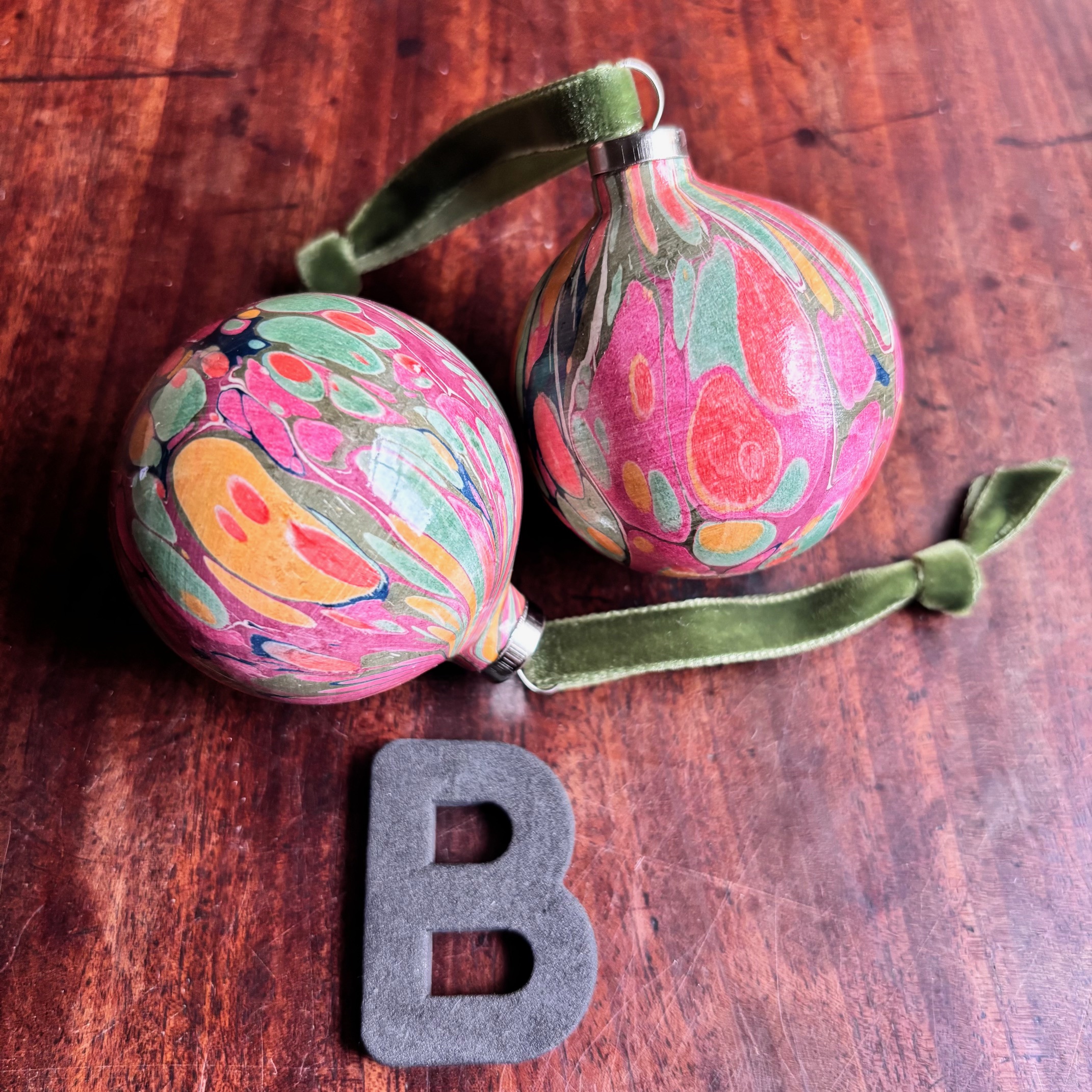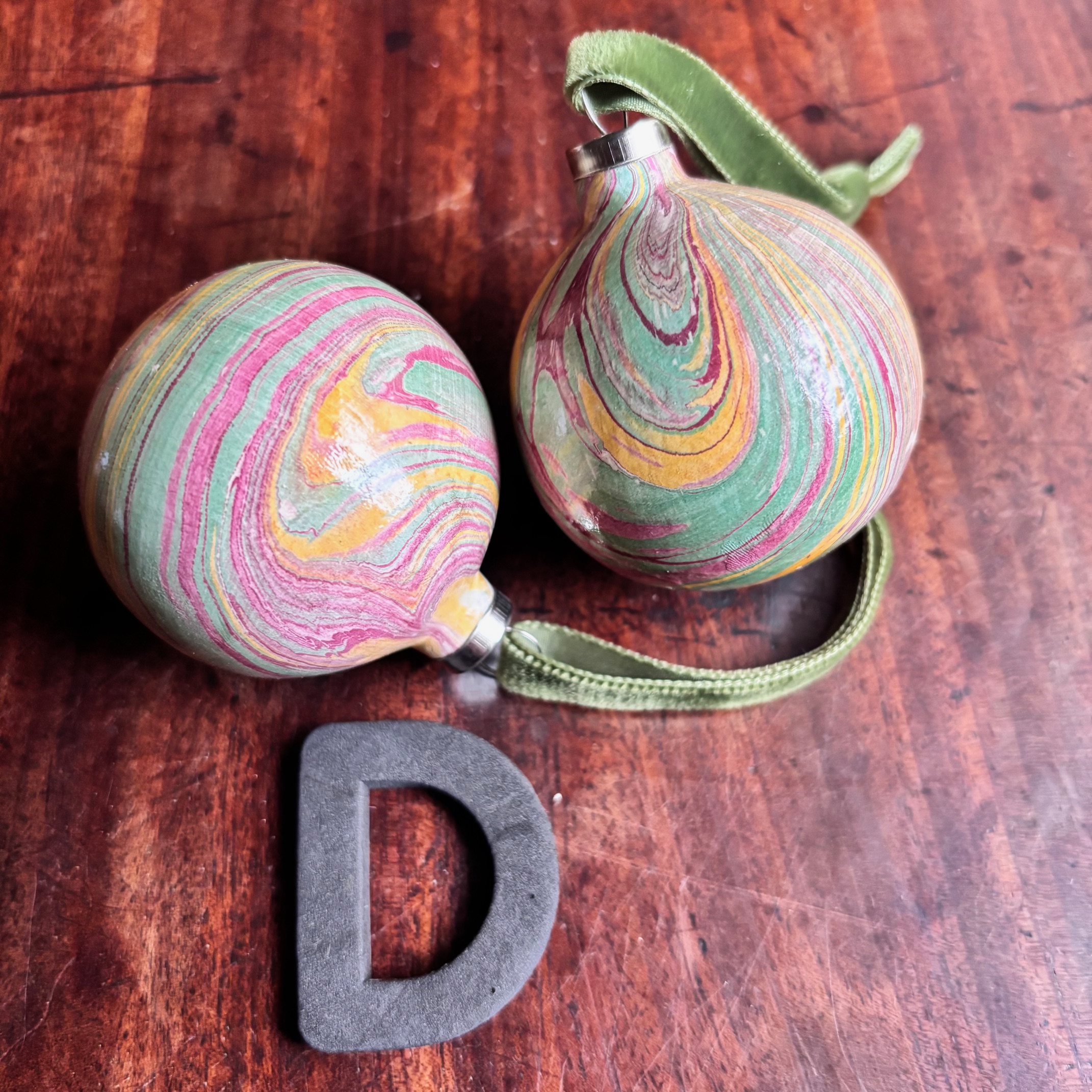 Hand marbled ceramic baubles either to hang on your tree or decorate the Christmas table.